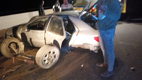 إصابة 4 أشخاص في حادث انقلاب سيارة ملاكي بعد كوبري الوردة البيضاء بالسويس