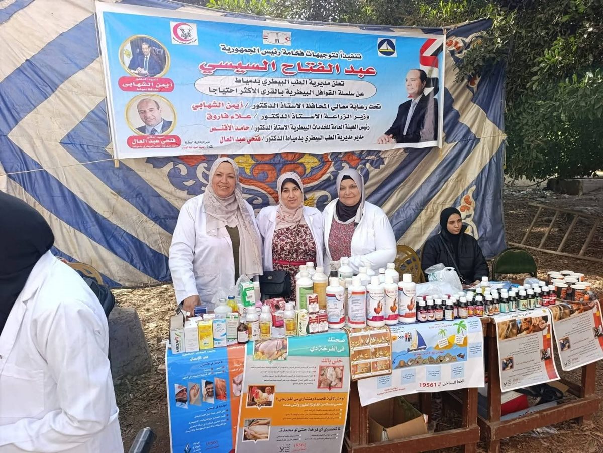 توقيع الكشف البيطري والعلاج المجاني لـ2737 حالة خلال قافلة بيطرية بدمياط