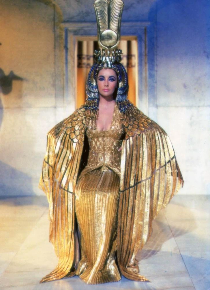 في دور كليوباترا، ارتدت إليزابيث تايلور فستاناً ذهبياً مهيباً يناسب الملكة. ومع ذلك، من الصعب اختيار زي واحد للإشادة به في هذا الفيلم، لأن جميع الفساتين التي ظهرت فيها إليزابيث كانت رائعة.