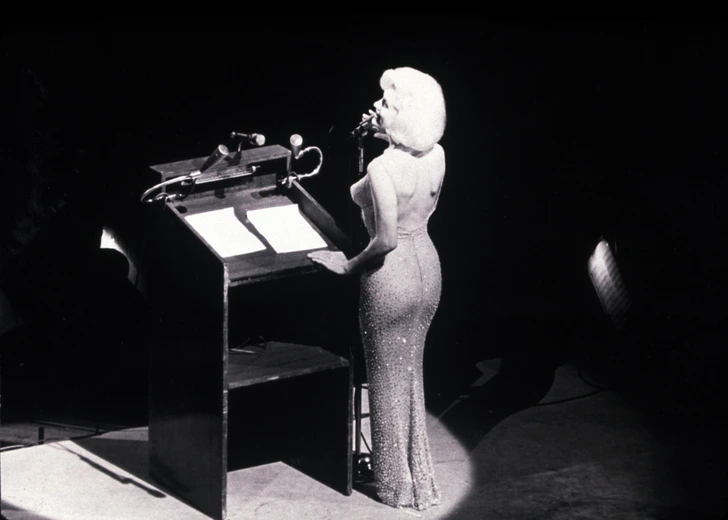 مارلين مونرو: عندما غنت مارلين مونرو أغنية Happy Birthday أمام الرئيس الأمريكي المغتال جون كينيدي، كانت ترتدي فستان سهرة طويلاً وفاخراً ومطرزاً بأحجار الراين. وقد كان هذا الفستان هو المرجع الذي انبثقت منه جميع “الأزياء الشفافة” الحديثة.