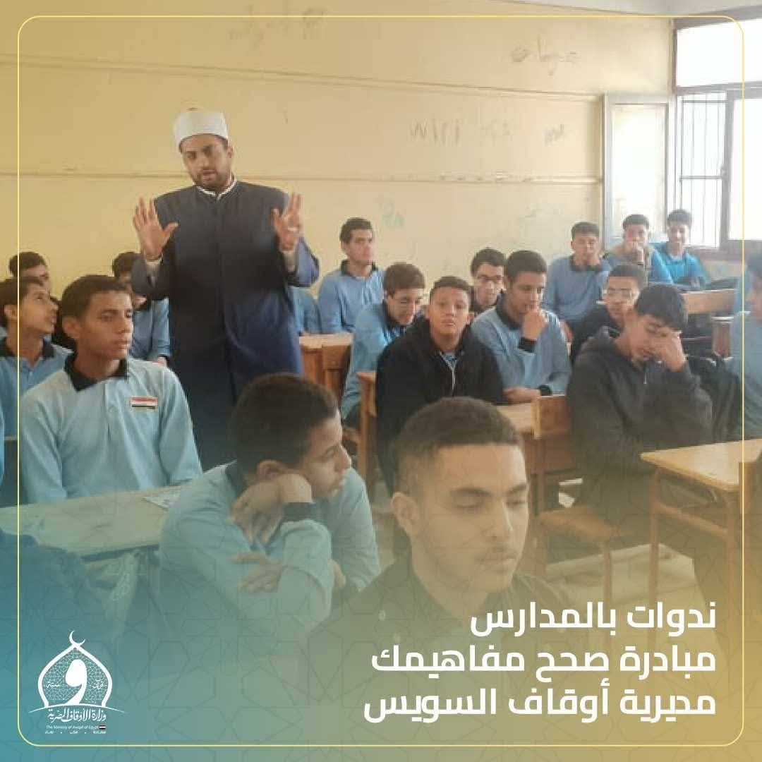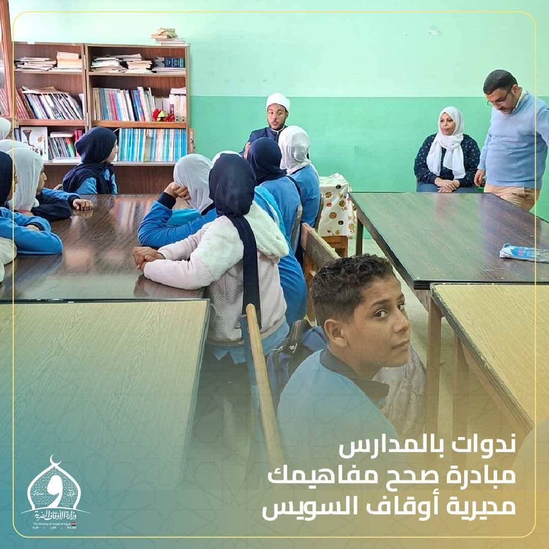 قامت مديرية أوقاف السويس، بتنفيذ سلسلة من الندوات التوعوية والدينية في عدد من مدارس المحافظة، وذلك ضمن فعاليات مبادرة "صَحِّح مفاهيمك" التي أطلقتها وزارة الأوقاف.