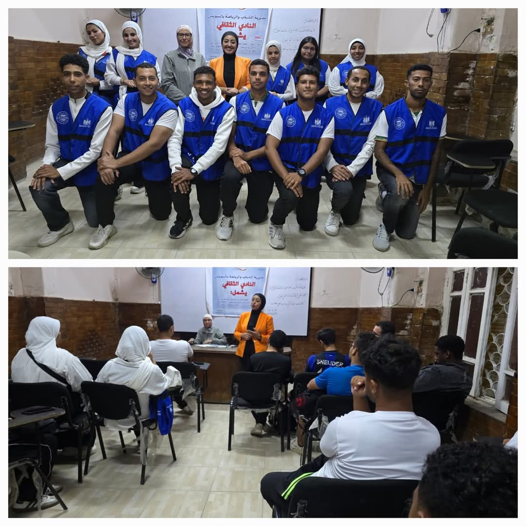 وفي سياق أخر، تواصل وزارة الشباب والرياضة برئاسة الدكتور أشرف صبحى وزير الشباب و الرياضة ، توجيهات اللواءا.ح دكتور طارق الشاذلى محافظ السويس ، الإدارة المركزية لتنمية الشباب بقيادة رضا سفينة ، الإدارة العامة للبرامج الثقافية و الفنية بمتابعة محمود جبر ، بالتنسيق مع مديرية الشباب و الرياضة بقيادة الاستاذة سماح مهدى ، إدارة الشباب بمتابعة و إشراف هناء مصطفى تنفيذ خطة نادى التثقيف و المجتمع عن شهر نوفمبر ٢٠٢٥.