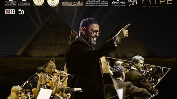 الموسيقارهاني فرحات يقود الأوركسترا الملكية في حفل أمام أهرامات