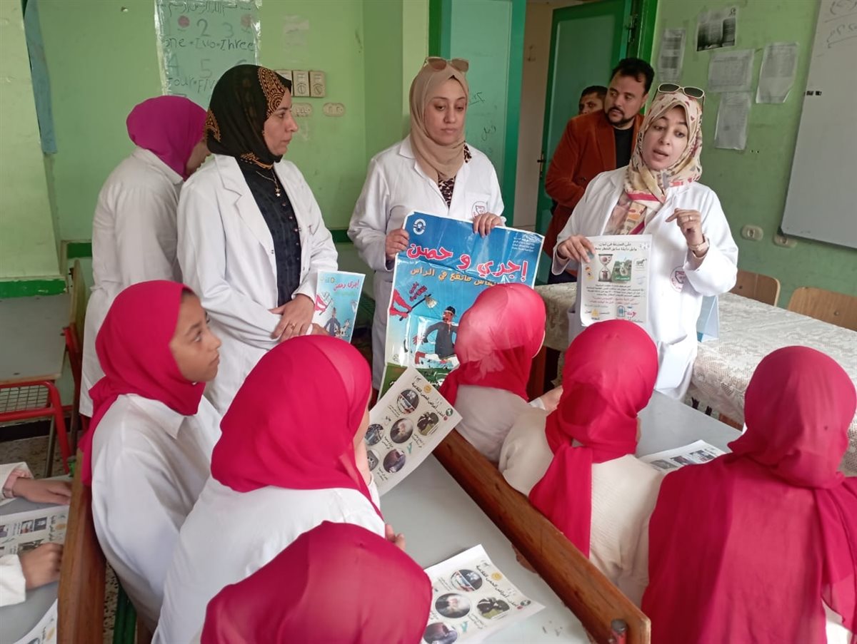 وتوجه الفريق الإرشادي إلى إحدى مدارس التعليم الاعدادي، ضمن حملة "السفير الصغير البيطري"، والتي تنفذها الهيئة، حيث تم توعية الطلاب من خلال شرحاً وافياً لأهمية التحصين ضد الأمراض الوبائية، والتعريف بالحملة القومية الجارية، بالإضافة إلى تقديم إرشادات حول أسس التربية الآمنة للدواجن وطرق التعامل السليم مع الحيوانات الحرة لتجنب نقل الأمراض، وذلك في سبيل نقل الطلاب الممارسات إلى المجتمع.