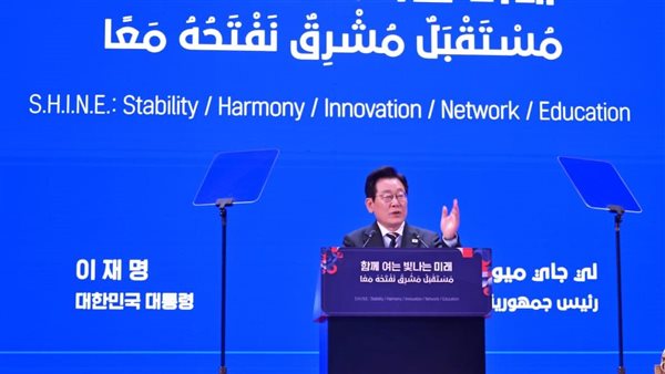 كما أشار الرئيس الكوري إلى مبادرة "SHINE" والتي تشمل ثلاثة مجالات تتمثل في السلام والازدهار والثقافة، وفتح مستقبل مشرق للشرق الاوسط وشبة جزيرة كوريا لتحقيق الاستقرار، وأن الحكومة الكورية ساهمت بشكل مباشر في إرساء السلام داخل الشرق الأوسط، معلنًا عن تقديم كوريا مساهمات بمقدار ١٠ ملايين دولار للهلال الأحمر المصري، واتفاقه مع الرئيس عبد الفتاح السيسي علي المشاركة في إعادة الاعمار داخل قطاع غزة، مؤكدًا حرصه على تحقيق مستقبل أكثر ازدهارًا من خلال الابتكار المشترك ودفع التنمية الاقتصادية.