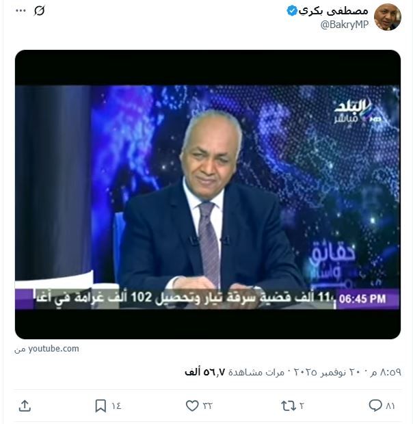 اشتد الصراع مرة أخرى على مواقع التواصل الاجتماعي بين الإعلامي مصطفى بكري، وعلاء مبارك، بعد المشادة الكلامية التي وقعت بين الطرفين في الساعات الماضية على منصة “إكس”.