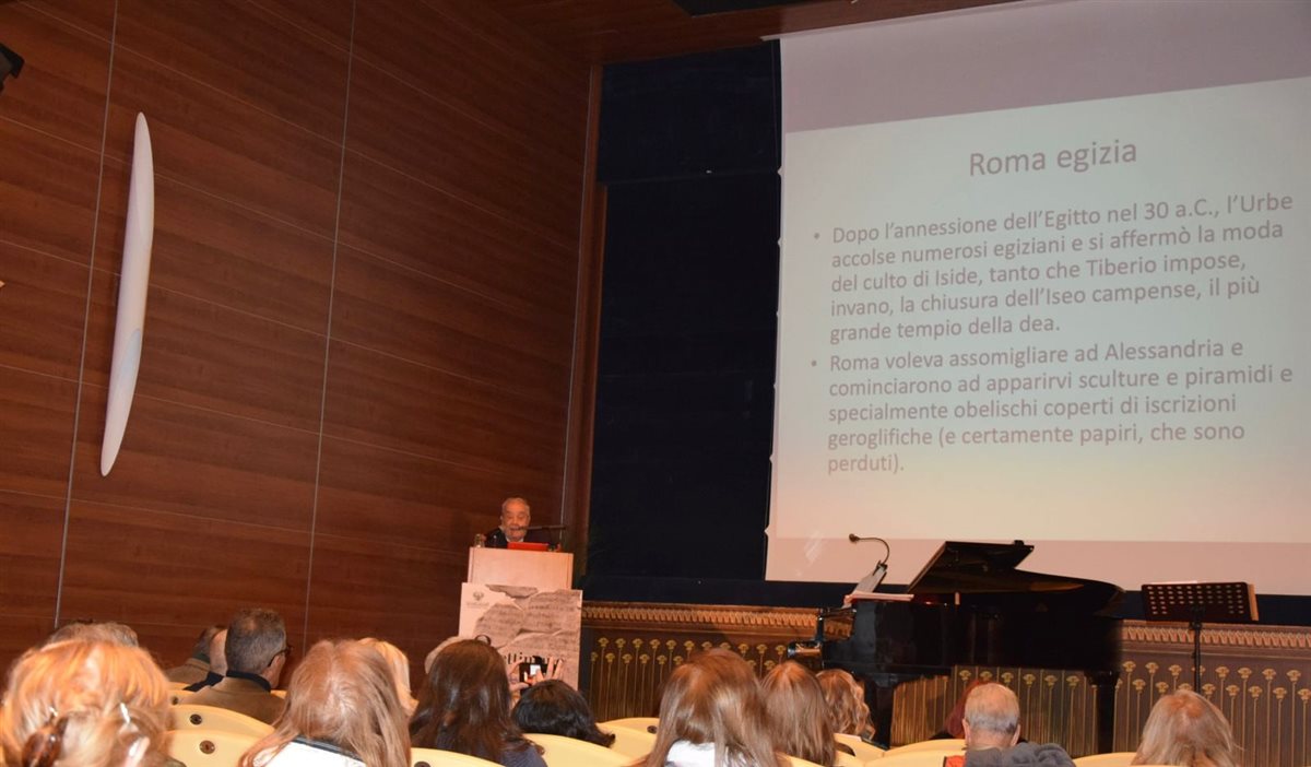واستضافت الأكاديمية، ضمن مبادرتها ثمانية أسابيع حول الحضارة المصرية القديمة، البروفيسور أليساندرو روكاتي، أحد أبرز الأسماء في دراسات علم المصريات. وقد استهل روكاتي حديثه باستعادة ذكرياته عن أول مؤتمر قدّمه في الأكاديمية قبل أربعين عامًا، إبّان تولّي وزير الثقافة الأسبق الفنان فاروق حسني إدارة الأكاديمية، كما وجّه شكره لمديرة الأكاديمية على استضافته في الوقت الحالي. وبدأ محاضرته متحدثًا عن أهمية الكتابة في مصر، من الكتابة الديموطيقية وصولاً إلى الكتابة القبطية.