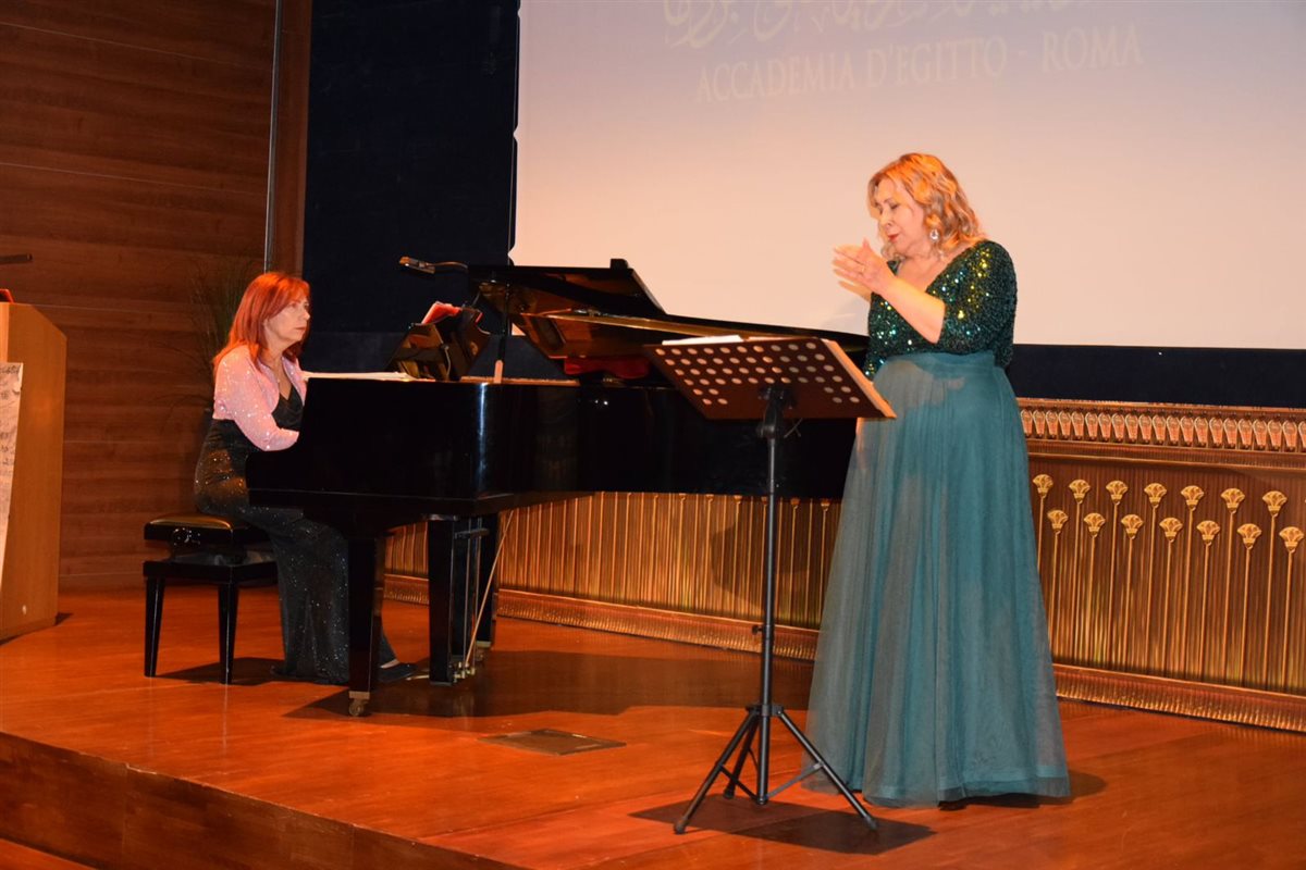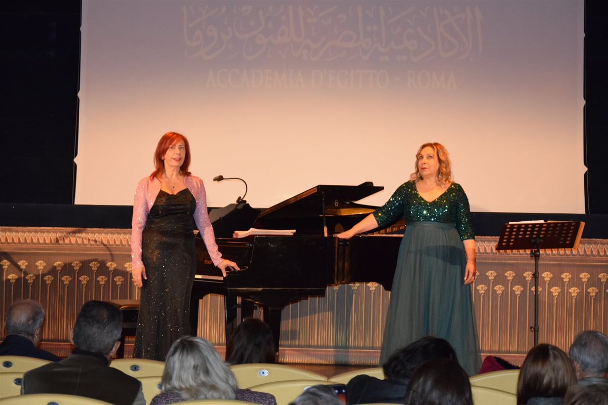 وتضمّنت الفعالية أيضًا حفلًا موسيقيًا مميزًا قدّمته السوبرانو الإيطالية بيانكا داموري وعازفة البيانو سابرينا كوردوني، حيث أدّتا أعمالًا موسيقية رائعة من عصر الباروك احتفالًا بذكرى المؤلف الإيطالي الشهير أليساندرو سكارلاتي. كما قدّمت سابرينا كوردوني عملين موسيقيين إهداءً للأكاديمية ومديرتها الدكتورة رانيا يحيى؛ الأول من التراث الموسيقي المصري لفنان الشعب سيد درويش، والثاني أغنية “حلوة يا بلدي” للمطربة الايطالية العالمية داليدا، وقد لاقى العملان تفاعلًا خاصًا من الحضور.