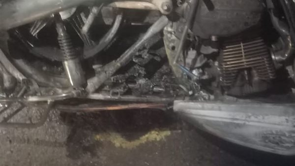 إصابة شخص في حادث تصادم دراجة نارية بالحاجز الخرساني واشتعالها بطريق الأدبية