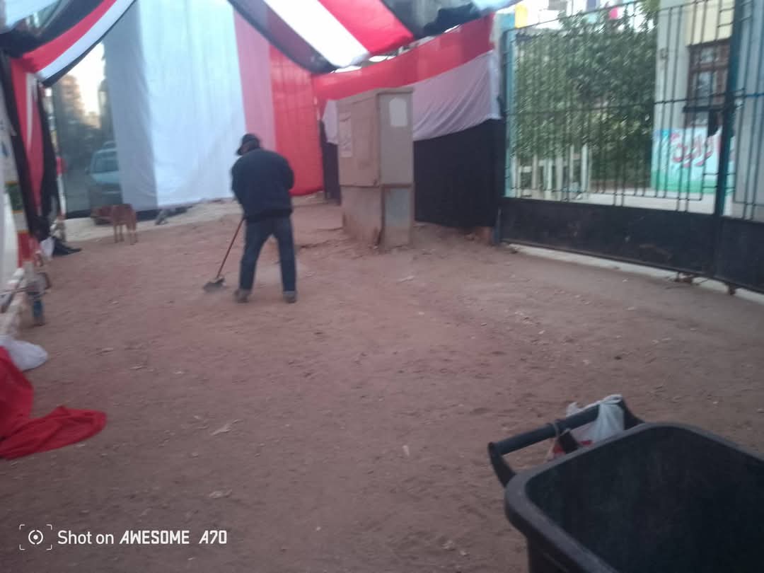 حيث تمت اليوم أعمال النظافة ورفع الاشغالات ورفع كفاءة الإنارة ودهانات الأرصفة بمحيط اللجان داخل وخارج اللجان والجهاز التنفيذى بالكامل وجارى الأعمال، ومازال العمل، مستمر بنطاق الحي