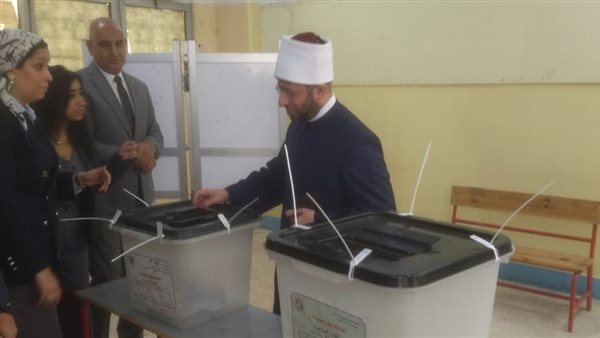 وزير الأوقاف يدلي بصوته في الانتخابات البرلمانية بمدرسة فاطمة عنان الإعدادية