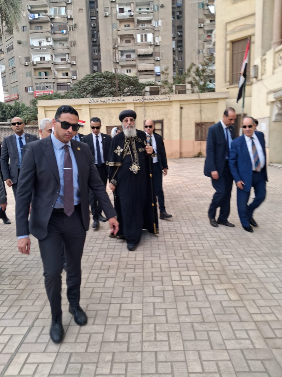 البابا تواضروس الثاني يغادر مدرسة الشهيد امتياز كامل بعد الإدلاء بصوته