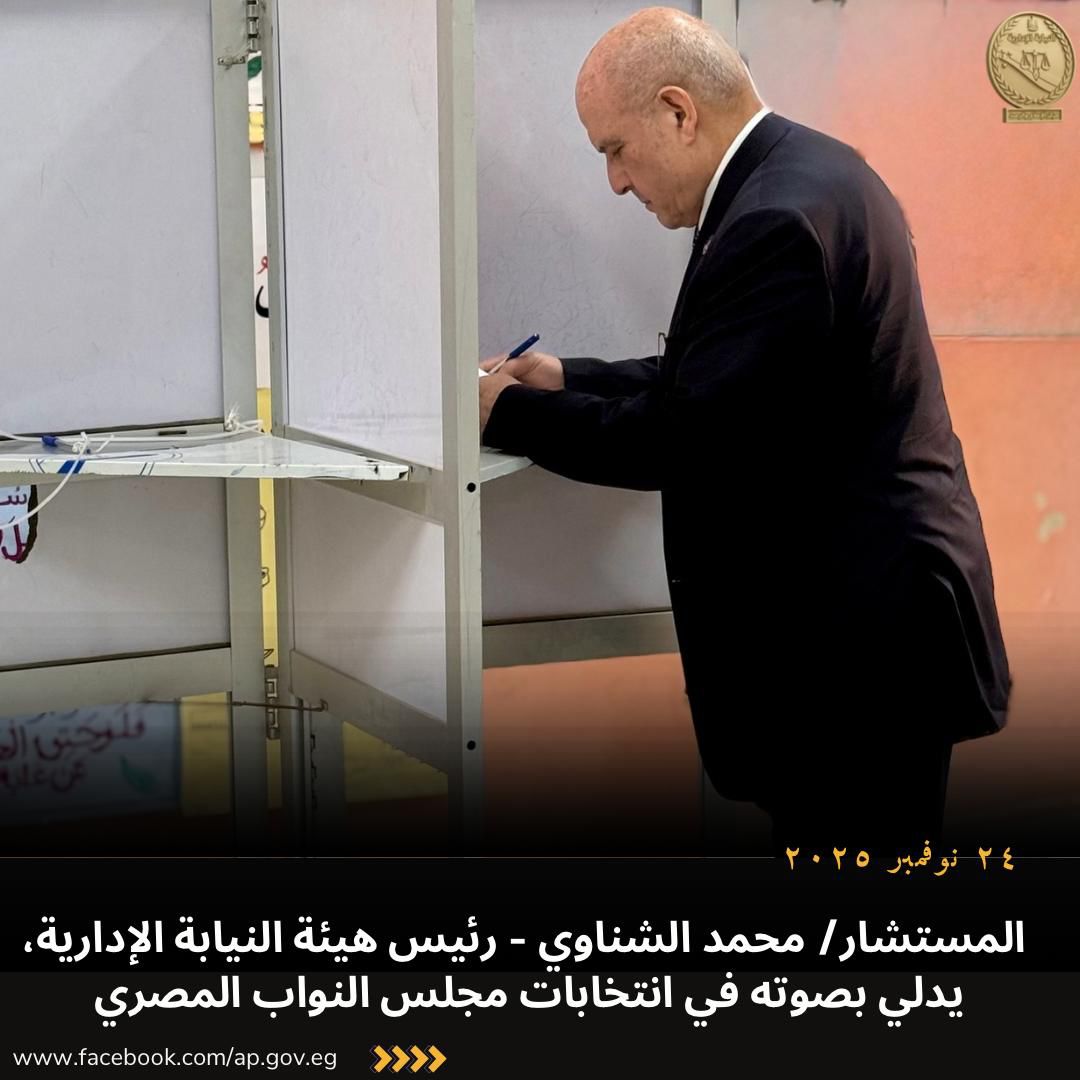 قام المستشار محمد الشناوي – رئيس هيئة النيابة الإدارية، صباح اليوم الاثنين الموافق ٢٤ نوفمبر ٢٠٢٥، بالإدلاء بصوته في أول أيام التصويت بالداخل للمرحلة الثانية من انتخابات مجلس النواب.