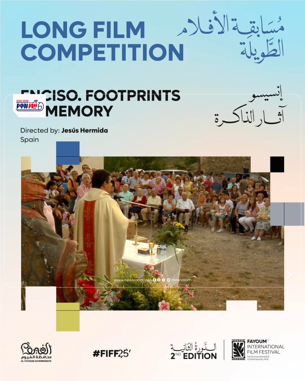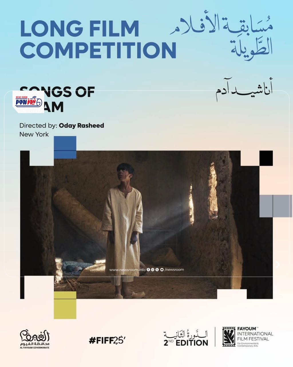 كان مهرجان الفيوم السينمائي قد أطلق البوستر الرسمي للدورة الثانية التي تحمل رؤية فنية وبصرية تعبّر بوضوح عن هوية المهرجان وشعاره، والبوستر الجديد من تصميم محمود إسماعيل، الذي صممه بشكل مميز، يعتمد على بناء بصري محكوم بعلاقة متوازنة بين الشكل والمضمون، حيث تتجسد في مركز التكوين شخصية أنثوية ترتدي زياً تراثياً مصرياً في حركة تصاعدية واضحة، تمتد يدها نحو جريدة النخل المنيرة – الرمز البصري للمهرجان – في إشارة إلى السعي نحو الضوء والمعرفة.