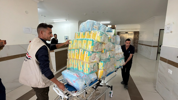 وخلال هذه الحملة الإنسانية، تم توزيع الحليب والحفاضات لتلبية احتياجات الأطفال والمرضى من الفئات الأكثر هشاشة، وضمان توافر احتياجاتهم الأساسية بصورة عاجلة ومنتظمة، في إطار مسؤولية إنسانية ثابتة تجاه أبناء الشعب الفلسطيني.