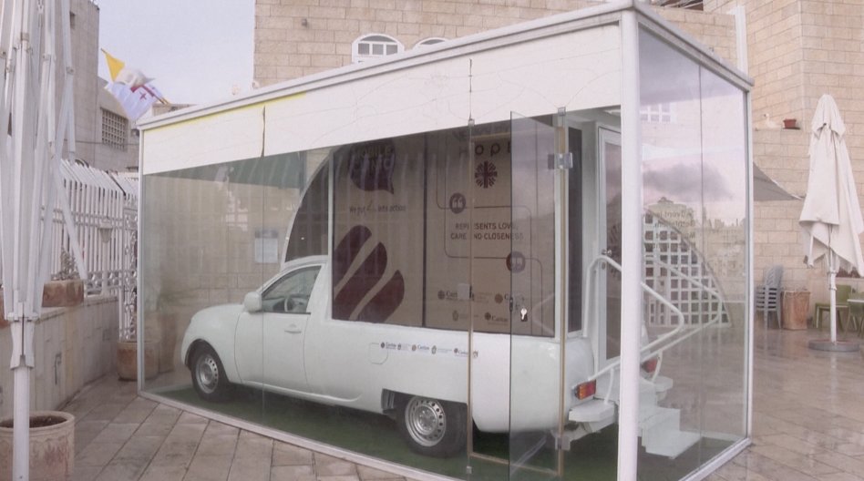 تم إغلاق المنصة المفتوحة في الجزء الخلفي من السيارة، والتي كان البابا يقف عليها ذات يوم أثناء رحلته عبر بيت لحم، وتحويلها إلى منطقة علاج الأطفال.