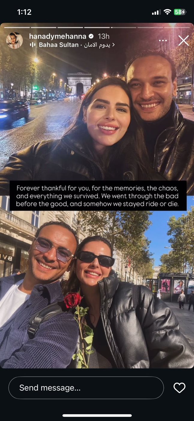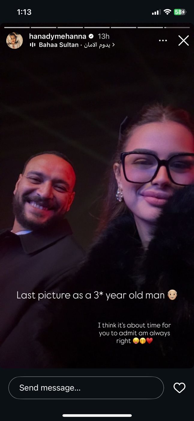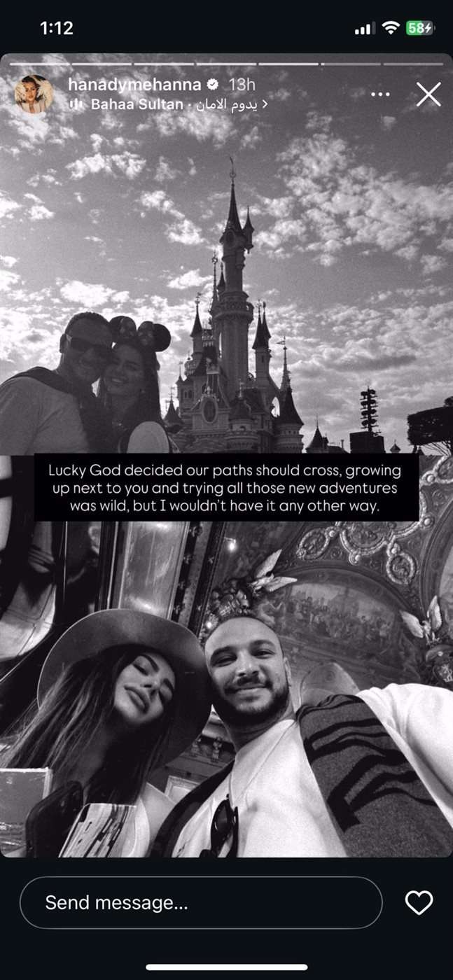 حيث نشرت هنادي مهنا مجموعة من صورهما عبر حسابها الرسمي على موقع تبادل الصور والفيديوهات إنستجرام، وقالت معلقة: “ممتنٌة لكَ للأبد، وللذكريات، وللفوضى، ولكل ما نجونا منه، مررنا بالسوء قبل الخير، وبطريقةٍ ما صمدنا، إما أن ننجو أو نموت، لحسن الحظ، شاء الله أن تتقاطع دروبنا، فالنشأة بجانبك وخوض كل تلك المغامرات الجديدة كانت تجربةً رائعة، لكنني لم أكن لأرضى بغير ذلك، آخر صورة لي وأنا طفلٌ في الثالثة من عمره، أعتقد أن الوقت قد حان لتعترف بأنني دائمًا على حق”.