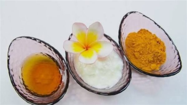 1. ماسك الكركم والعسل والزبادي (للتفتيح والتغذية)
