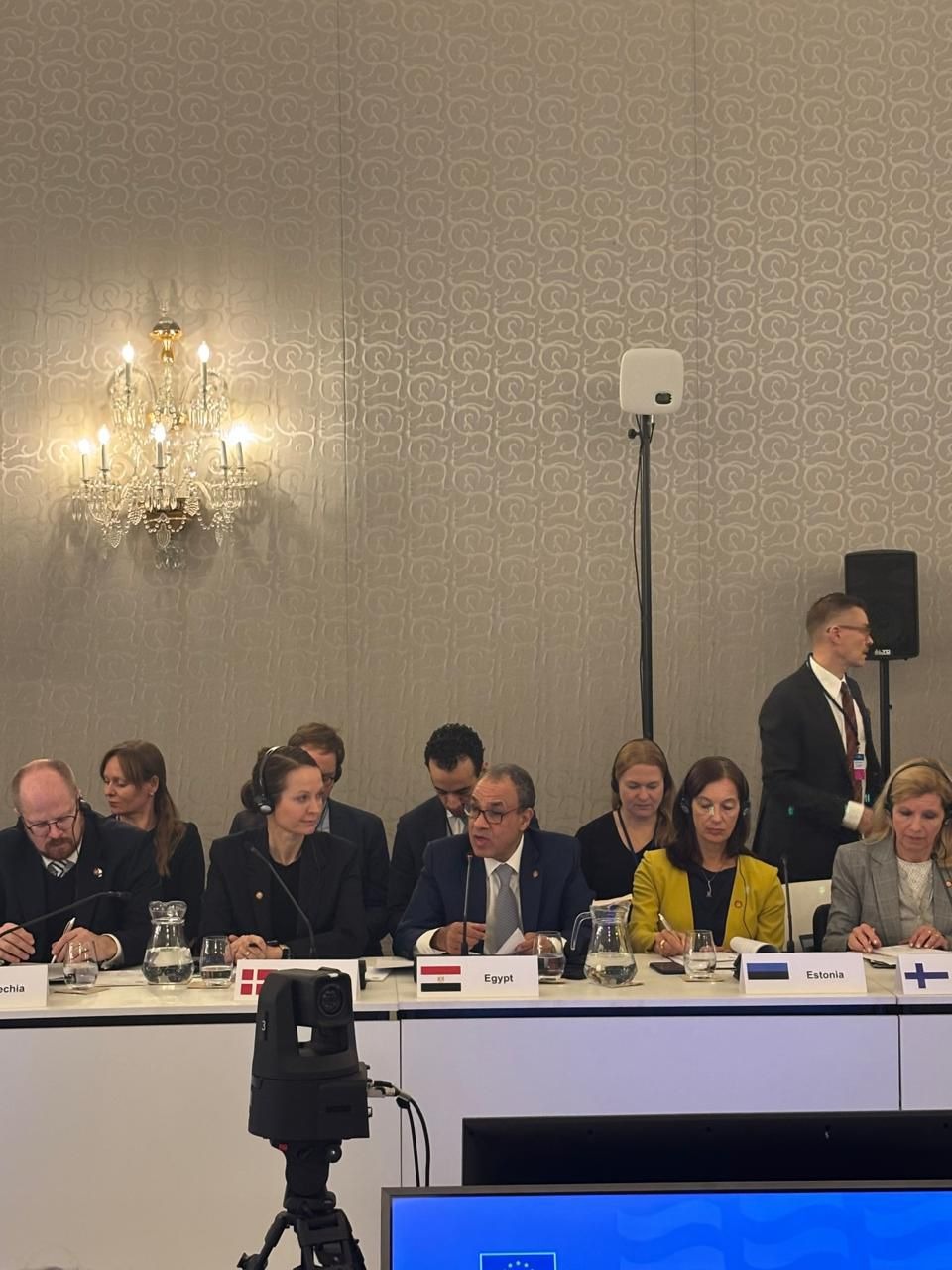 وحرص عبد العاطي التأكيد خلال كلمته على ضرورة مواجهة التطورات الجيوسياسية بالمنطقة وتضافر الجهود الدولية للتوصل إلى تسوية عادلة للقضية الفلسطينية من خلال حل الدولتين والبناء على مخرجات قمة شرم الشيخ للسلام والعمل على تنفيذ خطة الرئيس الأمريكي دونالد ترامب، والسماح بنفاذ المساعدات الإنسانية إلى قطاع غزة دون عوائق.