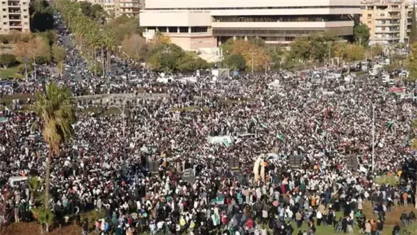 شهدت مدينة حمص السورية، اليوم الجمعة، تجمع آلاف من السوريين احتفالا بالذكري الأولى لسقوط نظام بشار الأسد، استجابة لدعوة الرئيس السوري أحمد الشرع خلال خطابه القصير بالأمس.