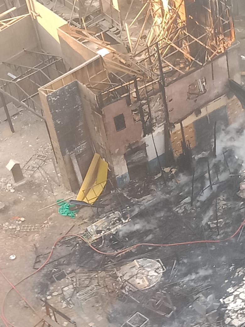 وكان الاستوديو يضم محال تجارية وورشة حديد ضمن أعمال تصوير المسلسل، حيث كان اللوكيشن مصمما على أنه أحد الحوارى الشعبية التى تضم ورش وعمال، بالإضافة إلى مبنى به شقة ضمن المسلسل، وهي شقة الفنان محمد إمام، وهى التى بدأت منها النيران، ثم امتدت إلى باقى اللوكيشن أو الحارة كما أطلق عليها العاملون بالمسلسل.