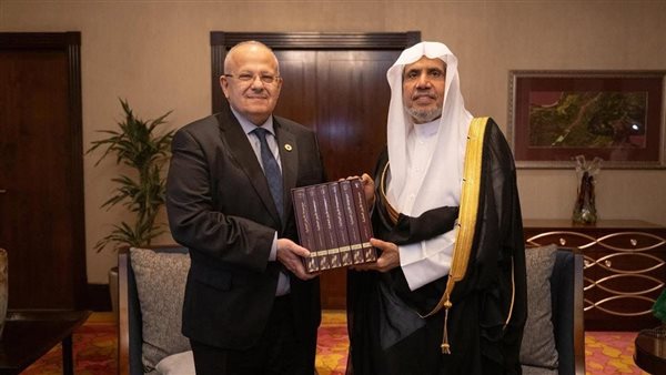 وفي ختام اللقاء، قدم الدكتور محمد الخشت إلى الدكتور محمد بن عبدالكريم العيسى نسخة من «موسوعة الأديان العالمية»، من تأليفه، وصدرت في 6 مجلدات، تقديرًا لجهود الدكتور العيسى ورابطة العالم الإسلامي في ترسيخ المعرفة الدينية المنهجية، وإسهامًا في دعم مسار الحوار العلمي حول تطوير الخطاب الديني وتعميق فهم التنوع العقدي والإنساني في سياق من التسامح والمشترك الإنساني وقبول الآخر.