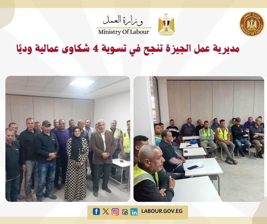 مديرية عمل الجيزة تنجح في تسوية 4 شكاوى عمالية وديًا