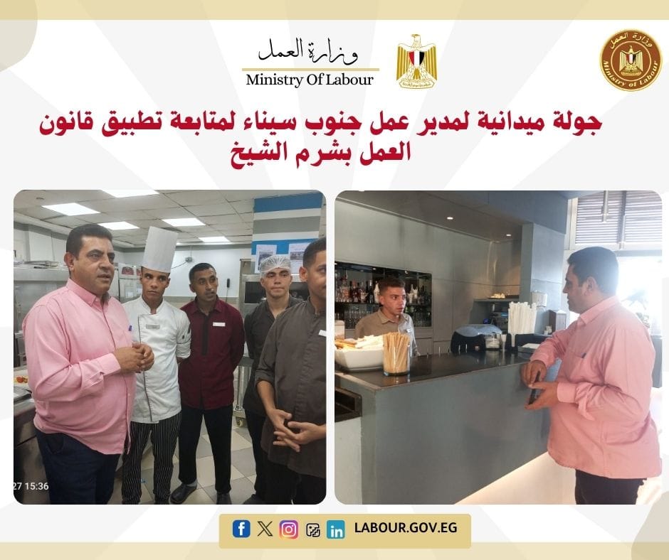 جولة ميدانية لمدير عمل جنوب سيناء لمتابعة تطبيق قانون العمل بشرم الشيخ