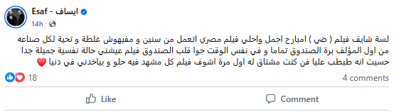 حيث قال إيساف في منشوره: “لسة شايف فيلم ضي امبارح اجمل واحلي فيلم مصري اتعمل من سنين، و مفيهوش غلطة و تحية لكل صناعه من أول المؤلف برة الصندوق تمامًا، و في نفس الوقت جوا قلب الصندوق، فيلم عيشني حالة نفسية جميلة جدا، حسيت أنه طبطب عليا فن كنت مشتاق له اول مرة اشوف فيلم كل مشهد فيه حلو، و بياخدني في دنيا”.