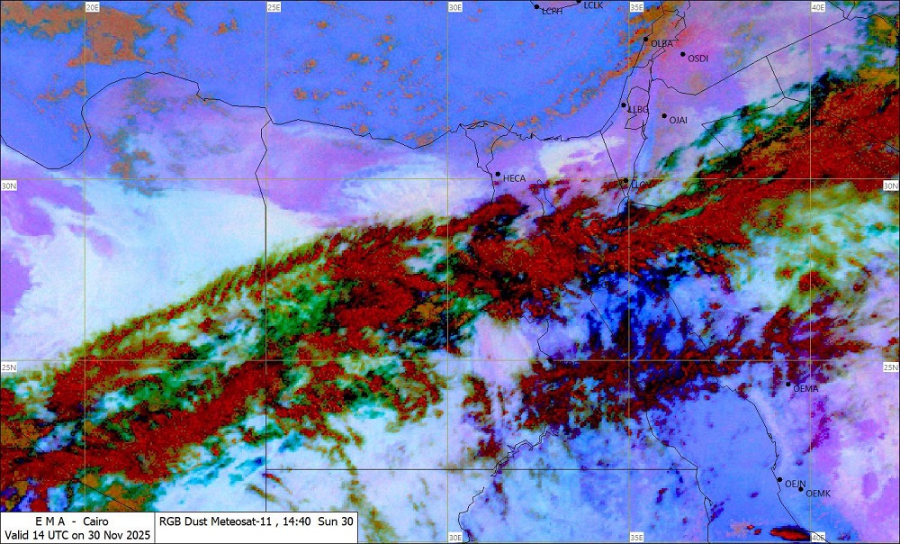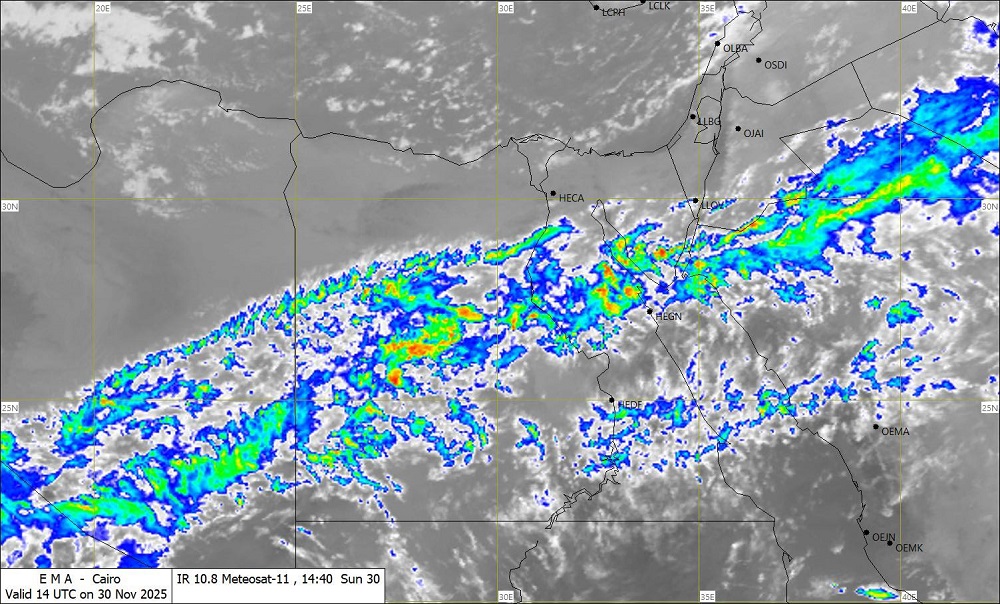وهناك استمرار تدفق السحب المنخفضة والمتوسطة على السواحل الشمالية وشمال الوجه البحرى يصاحبها سقوط الأمطار على مناطق متفرقة، مع استمرار الغطاء السحابي على شمال وجنوب الصعيد وسيناء الذي يعمل على زيادة الإحساس ببرودة الطقس، ودرجة الحرارة على القاهرة الكبرى الساعة الرابعة والنصف 21 درجة مئوية.