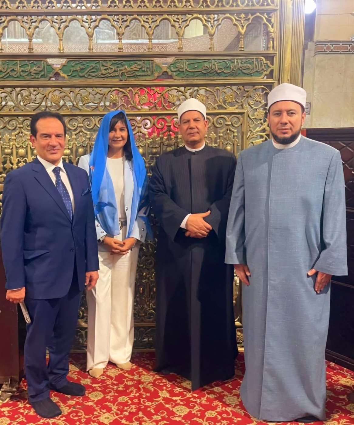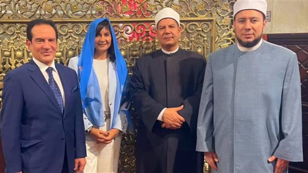 ووضعت السفيرة نبيلة مكرم، طرحة علي شعرها مطبوع عليها صورة السيدة مريم العذراء، خلال تواجدها في حجرة مقام سيدي أحمد البدوي، رافقها خلال زيارتها الدكتور نوح العيسوي وكيل وزارة الأوقاف بالغربية، والدكتور إبراهيم علي إمام وخطيب المسجد الأحمدي، وحرصت السفيرة على التقاط الصور التذكارية امام المقام.
