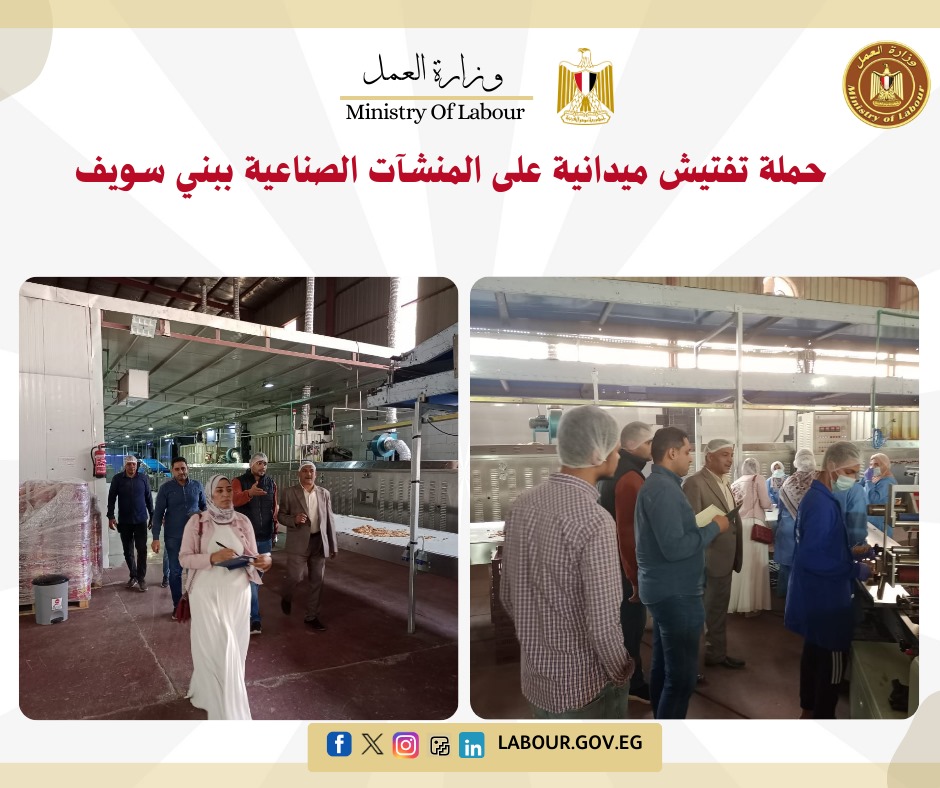حملة تفتيش ميدانية على المنشآت الصناعية ببني سويف
