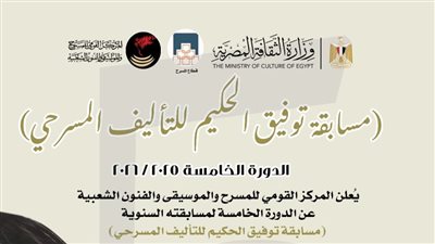 في سياق متصل، أعلن المركز القومي للمسرح والموسيقى والفنون الشعبية عن انطلاق الدورة الخامسة من مسابقة توفيق الحكيم للتأليف المسرحي للعام 2025 / 2026، وذلك برعاية ودعم الدكتور أحمد فؤاد هنو وزير الثقافة، وبإشراف الفنان القدير هشام عطوة رئيس قطاع المسرح.