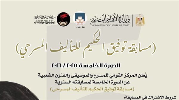 يُعلن المركز القومي للمسرح والموسيقى والفنون الشعبية عن الدورة الخامسة لمسابقته السنوية (مسابقة توفيق الحكيم للتأليف المسرحي).