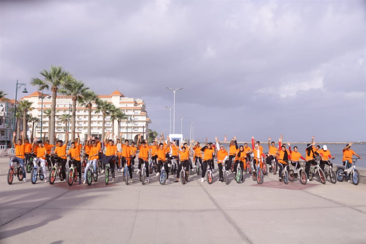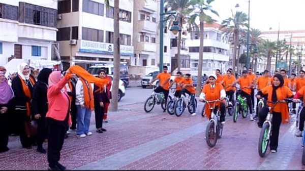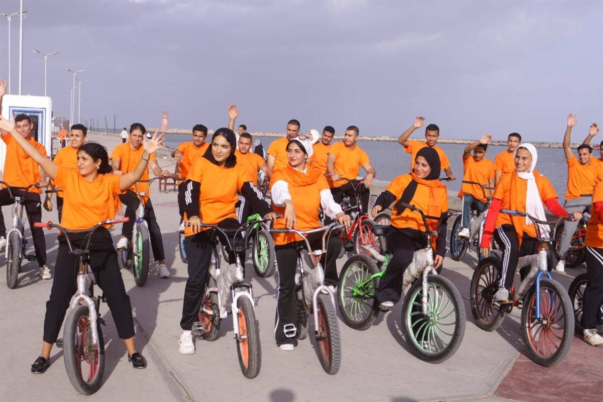 نائب محافظ دمياط تطلق إشارة رالي الدراجات من اللسان