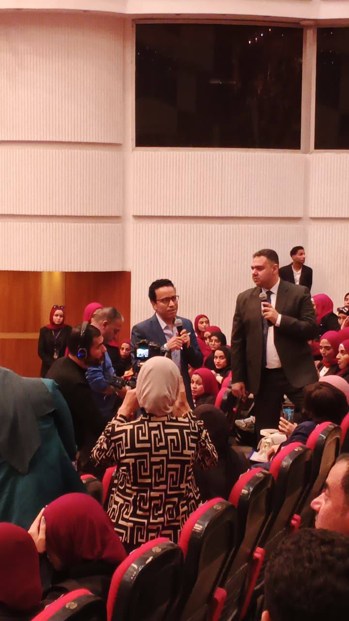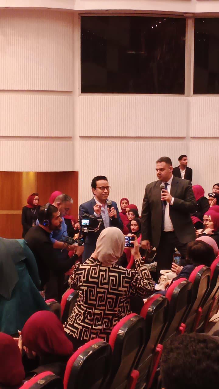 وأكد الدكتور السيد قنديل رئيس الجامعة أن جامعة حلوان تسعى دومًا إلى فتح آفاق جديدة أمام طلابها من خلال الفعاليات التي تلامس واقعهم وتناقش قضايا المجتمع بعمق ومسؤولية، مشددًا على أن الفن ليس مجرد وسيلة للترفيه، بل قوة ناعمة قادرة على صياغة الوعي وتعزيز الانتماء وبناء جيل قادر على التفكير والنقد والإبداع. وأشار إلى أن استضافة شخصيات فنية مؤثرة داخل الجامعة يسهم في إثراء الحوار المجتمعي، ويمنح الطلاب نماذج تلهمهم وتدعم قيم الوعي والمسؤولية.