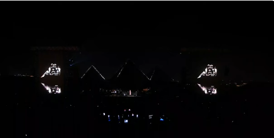 وبدأ حفل النجمة أنغام ضمن حفلات ليالى مصر التي تقام أمام الأهرامات، بأغنية "بلدى التاريخ" والتي لاقت تفاعلاً كبيراً من الجمهور الحاضر.