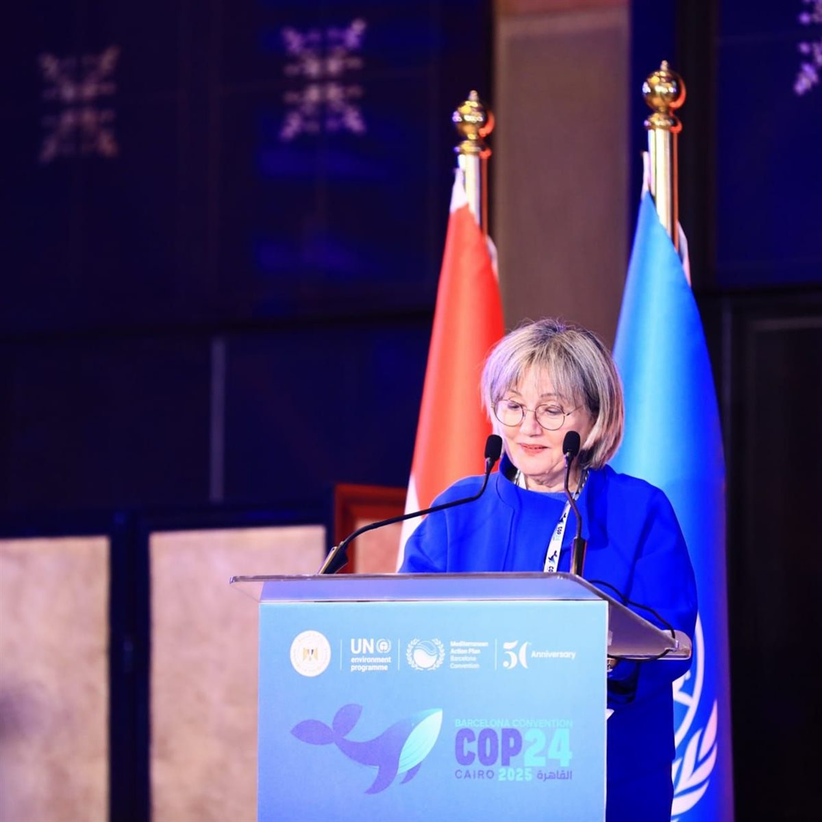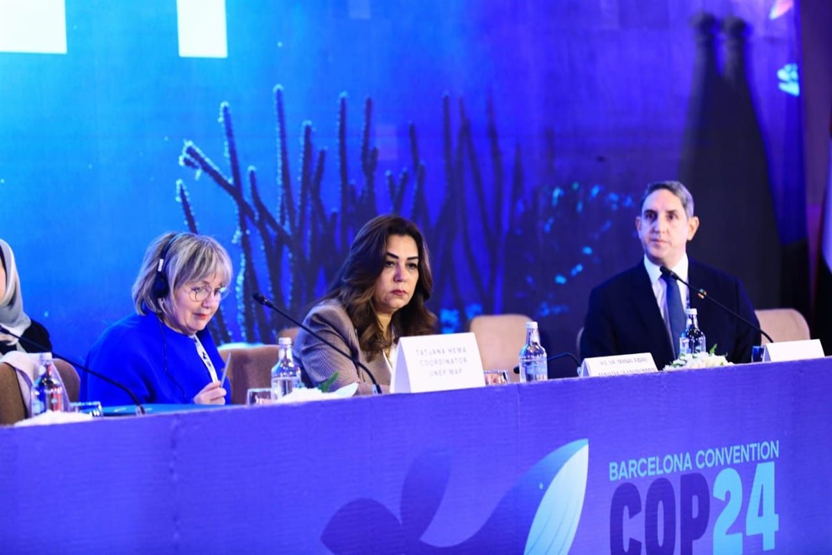 في حين، أكدت السيدة تاتيانا هيما منسقة برنامج الأمم المتحدة للبيئة خطة عمل البحر الأبيض المتوسط اتفاقية برشلونة على أن إقليم البحر المتوسط تعرض للعديد من التغيرات على مدار السنوات الماضية، حيث يعانى من التلوث والتدهور فى التنوع البيولوجى وهو ما يستلزم اتخاذ حلول سريعة تسهم فى ضمان مستقبل واقتصاد مستدام للإقليم ، قائم على مواجهة التغيرات المناخية والتلوث البلاستيكى ، مُشيرةً إلى الدور الكبير الذى تبذله الاطراف المتعاقدة فى اتفاقية برشلونة ، والذين تمكنوا من تحقيق العديد من الانجازات بفضل التعاون و التكاتف على مدار ٥٠ عاماً ، متطلعة إلى القرارات المتوقع اتخاذها من قبل الاجتماع الرابع والعشرين للاطراف المتعاقدة فى اتفاقية برشلونة والتى تهدف إلى تغيير المسار نحو سواحل أكثر نظافة ، حيث ستحدد هذه القرارات آليات العمل فى المستقبل وستسمح بمزيد من التقدم والاستدامة .