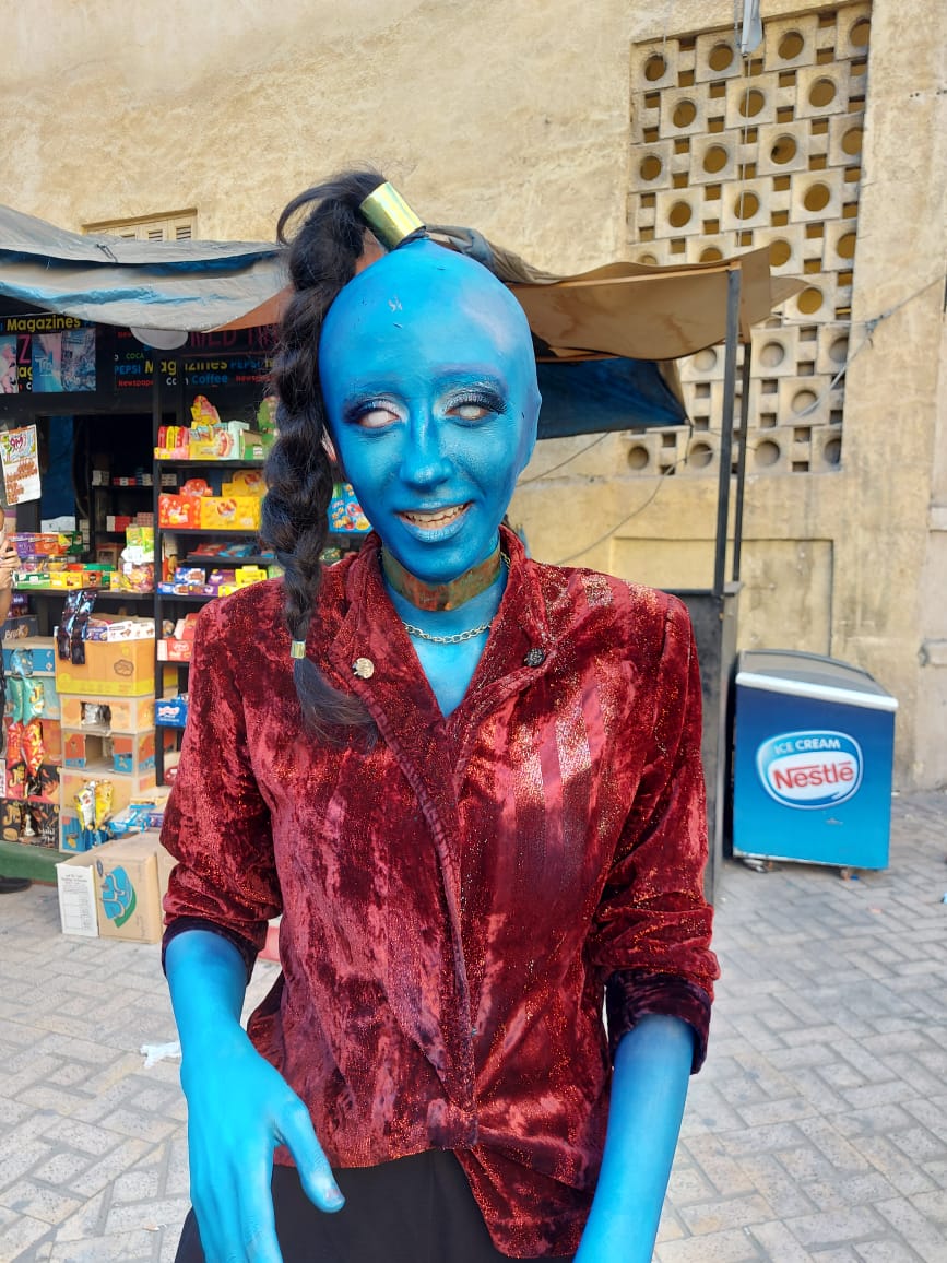 في مشهد غريب وغير مألوف أصبحت فتاة بزي كائن فضائي حديث الشارع المصري خاصة في محافظة الإسكندرية، بعدما أثارت ردود أفعال واسعة.