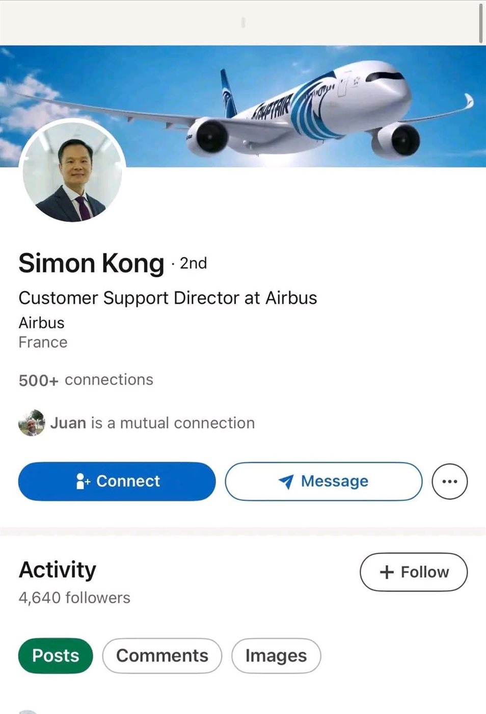 غيّر مدير قطاع الدعم الفني بشركة "إيرباص" صورة خلفيته على موقع "لينكد إن" إلى صورة طائرة مصر للطيران، تكريمًا للإنجاز التاريخي الذي حققه فريق مصر للطيران في تعديل نظم البرمجة لكل أسطول طائرات A320 في ثمان ساعات فقط، دون أي تأخيرات في الرحلات المجدولة، في وقت لا تزال فيه العديد من شركات الطيران العالمية تكافح لإتمام هذه العملية لأيام.