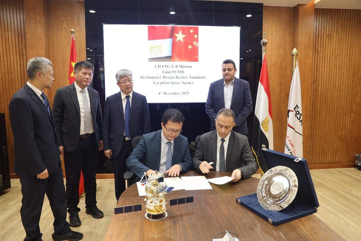 شهدت وكالة الفضاء المصرية اليوم الخميس 4 ديسمبر 2025 اجتماع مراجعة مرحلة التصميم المبدئي الخاص بالحمولة علي متن مركبة الهبوط القمرية الصينية تشانج-٨ مع وكالة الفضاء الصينية، وذلك خلال زيارة وفد رفيع المستوى، وذلك في خطوة تعكس صعود مكانة مصر الإقليمية والدولية في مجال علوم واستكشاف الفضاء.