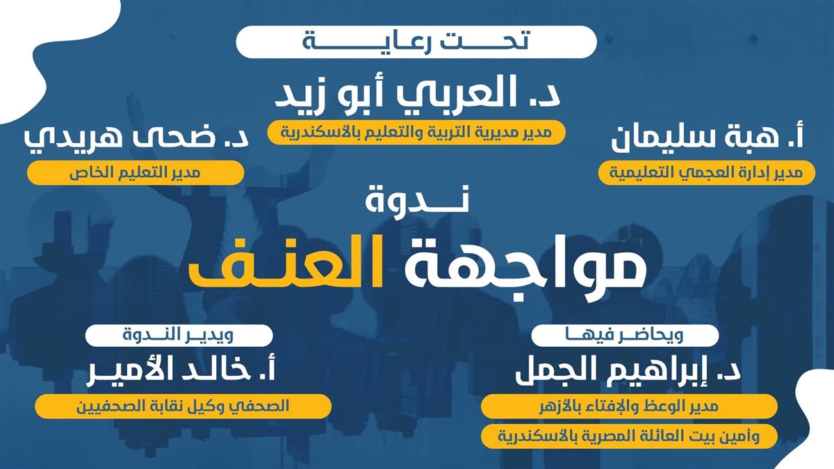 نظمت إدارة العجمي التعليمية غرب الإسكندرية، بقيادة هبة سليمان ، أولي ندوات مواجهه العنف، تحت عنوان العنف والتحديات المعاصرة، بمدرسة فرست بلس، بحضور ضحي هريدي مدير إدارة التعليم الخاص بالإدارة، عماد حجازي ، سعد حجازي مسئولي المدرسة ، صبري هاشم مدير المدرسة، تحت رعاية الدكتور عربي أبوزيد مدير مديرية التربية والتعليم.