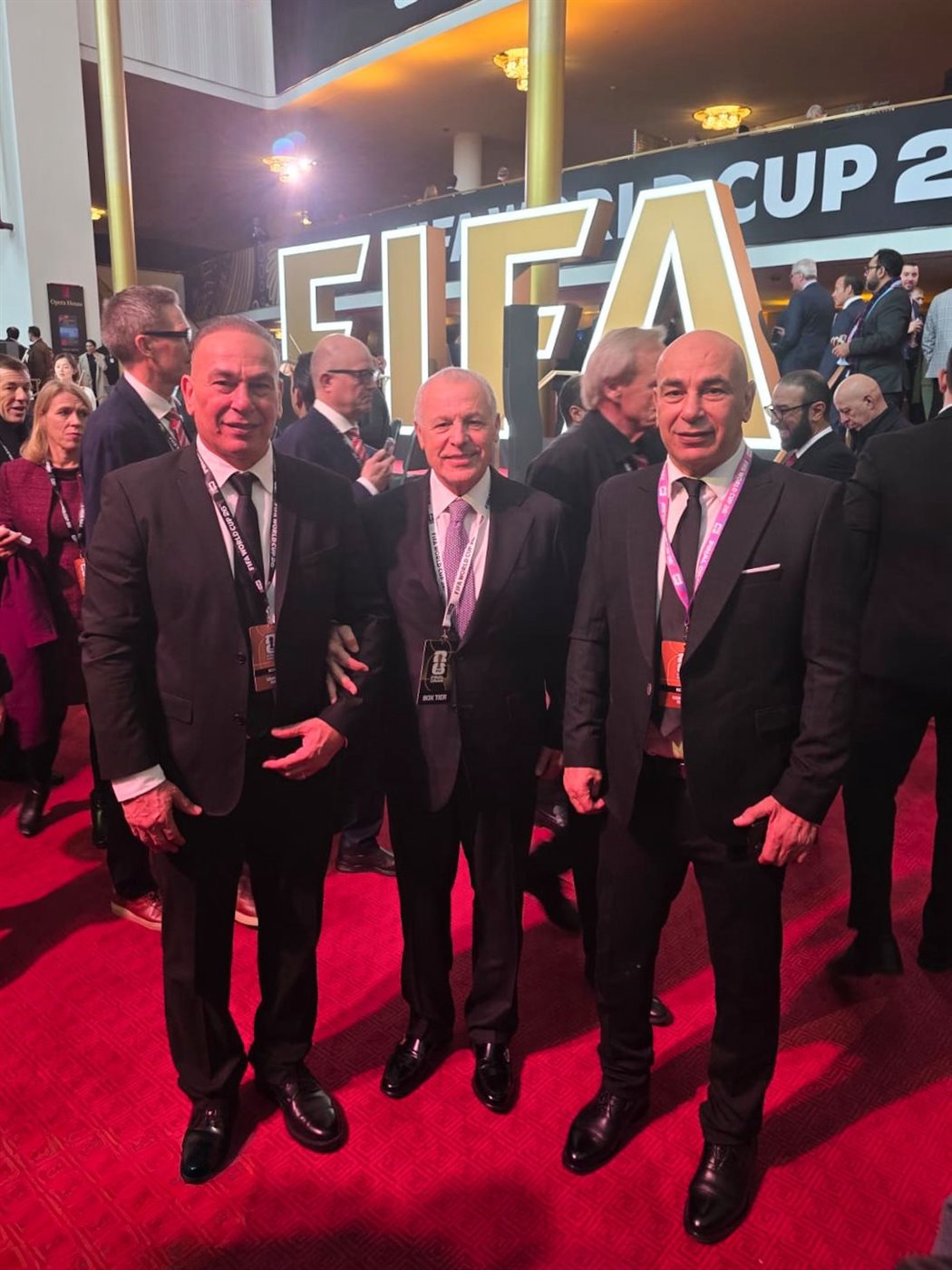 هاني أبو ريدة وحسام وإبراهيم حسن في حفل سحب قرعة كأس العالم 2026