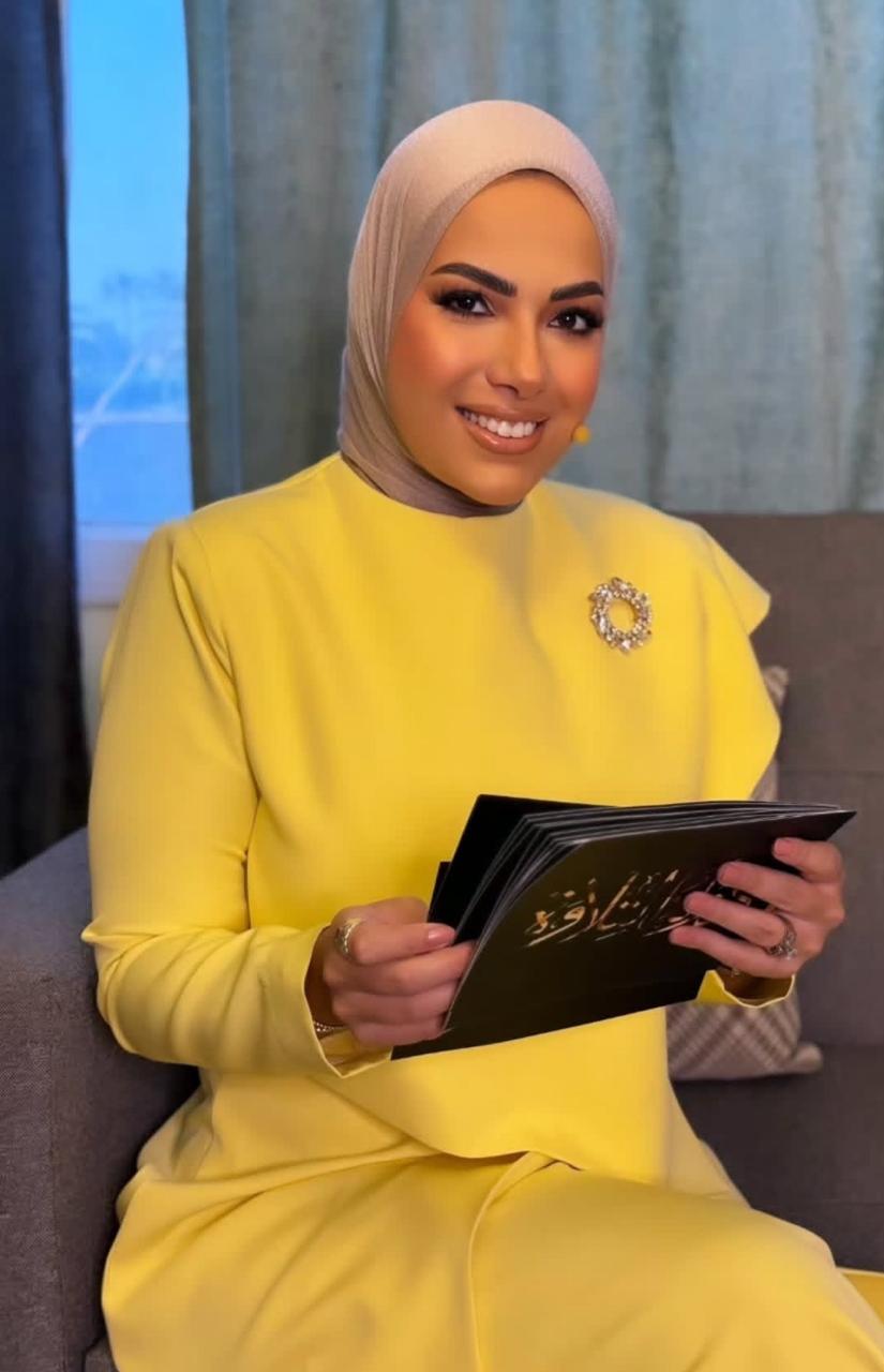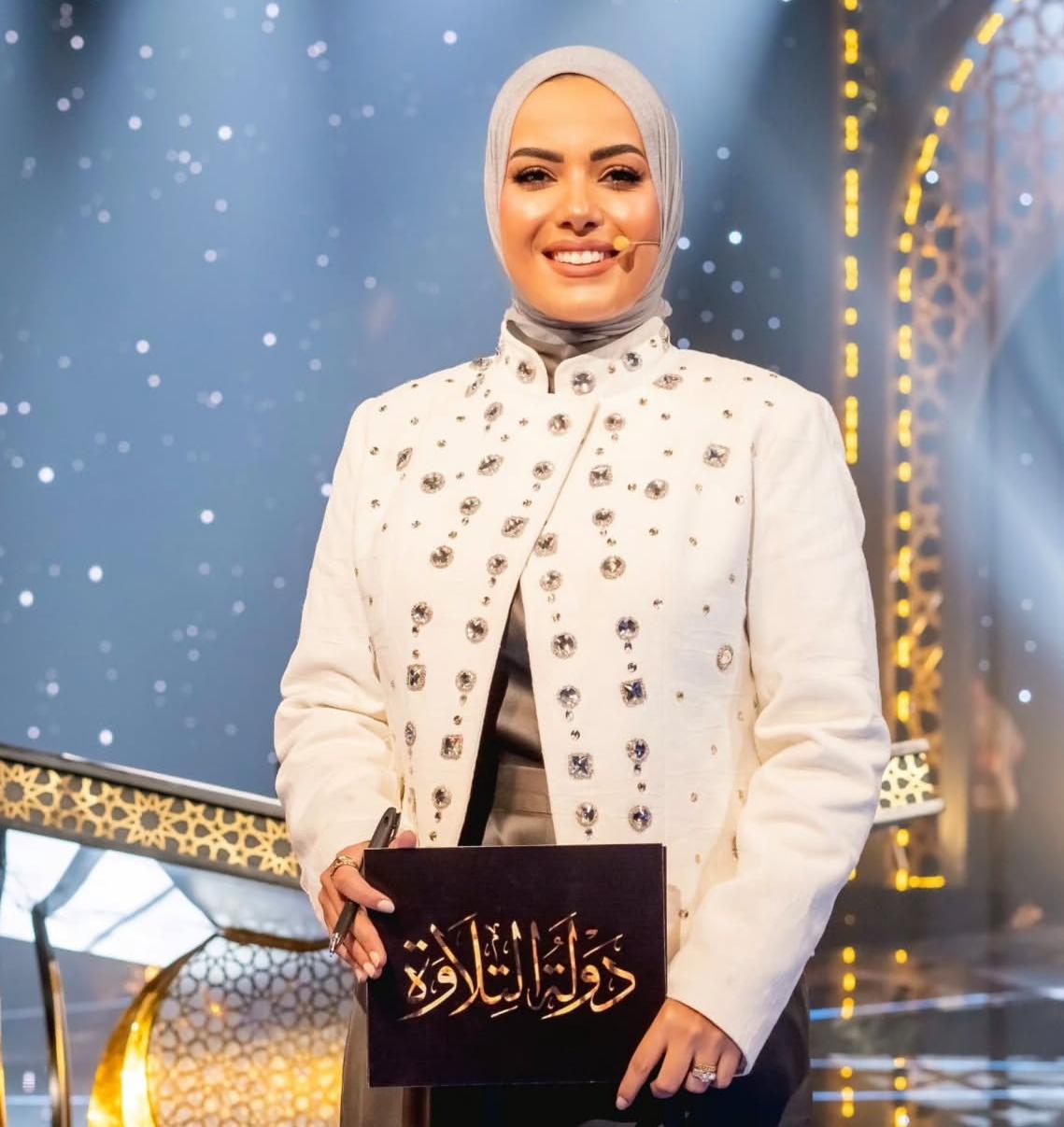 تألقت مقدمة برنامج دولة التلاوة آية عبد الرحمن خلال ظهورها منذ أولى الحلقات، فهي تتميز بأسلوب أنيق وعملي في اختيار ملابسها التي تجمع الوقار والبساطة.