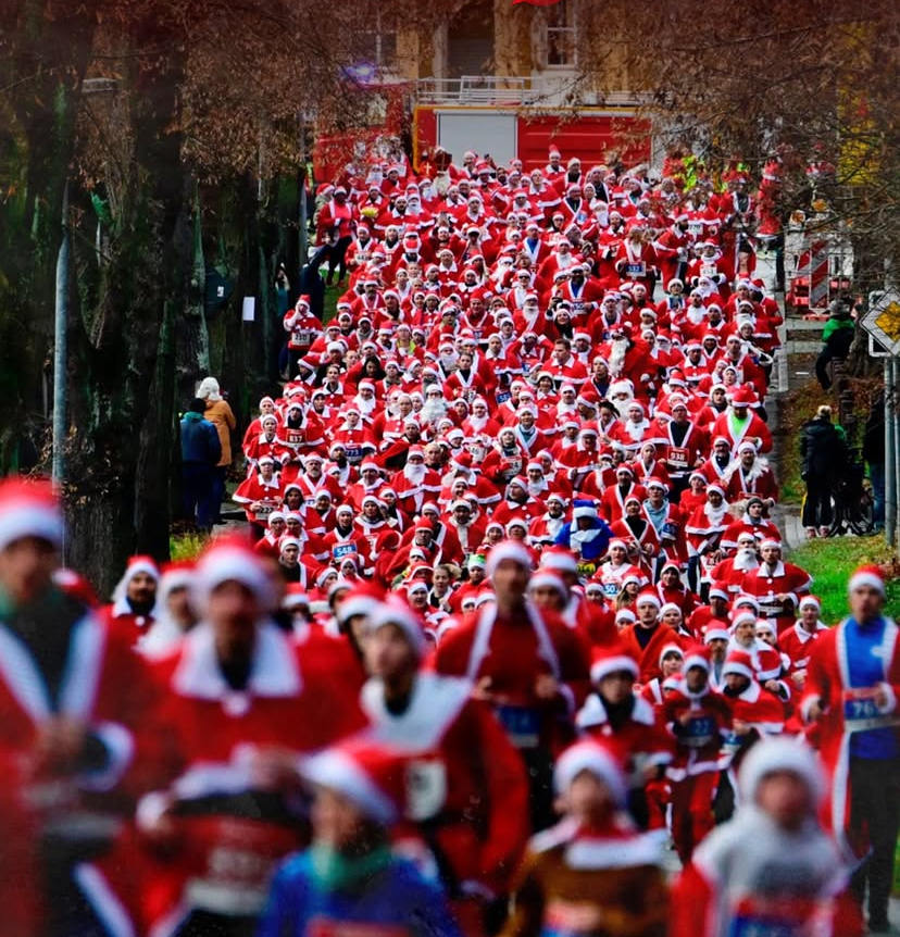 ينظم مكتب بودابست الرياضي سباق الجري المجتمعي المبهج للمرة العاشرة هذا العام، وقد وصل عدد المسجلين إلى مستوى غير مسبوق: فقد نفدت جميع تذاكر جميع المسافات، ولذلك سينطلق يوم الأحد 4500 عدّاء يرتدون لحى حمراء وبيضاء من شارع سوهاز وسط تساقط ثلوج اصطناعية، ثم يعودون إلى نفس المكان.