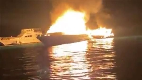 بدون ركاب.. حريق هائل يلتهم لنش سياحي وفلوكة خلال رسوهما على مرسى بالغردقة
