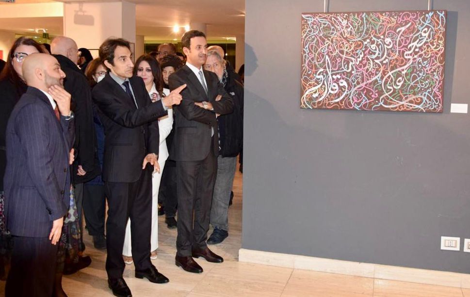 وألقى السفير بسام راضي، سفير مصر في روما، كلمة أكد فيها أهمية الخط العربي وتاريخه، معبرًا عن الاعتزاز به كجزء أصيل من الحضارتين العربية والإسلامية، مشيرًا إلى ما يحمله من عناصر فنية راقية تجمع بين إبداعات الخط العربي ومعاني الكلمات العميقة والرسومات الدقيقة.