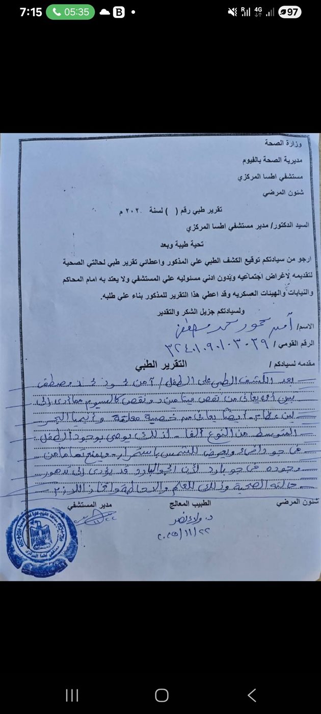وتابعت: اللافت أن من طلب هذا التقرير هي الطبيبة آية محمد مصطفى عمة الطفل التي قالت لي سابقًا إن الطفل "شرعًا لأبيه وليس لي".