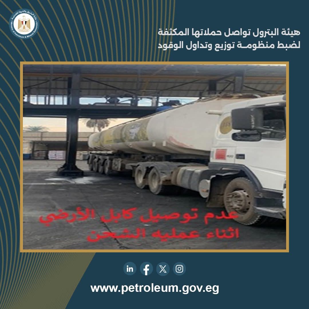 في إطار الدور الرقابي للهيئة المصرية العامة للبترول، وضمن جهود اللجنة المركزية للرقابة على نقل وتداول المنتجات البترولية، واصلت اللجنة حملاتها التفتيشية خلال الأسبوع الأول من شهر ديسمبر 2025 بعدد من المحافظات، بهدف إحكام الرقابة ومواجهة أي مخالفات تتعلق بتداول المنتجات البترولية.