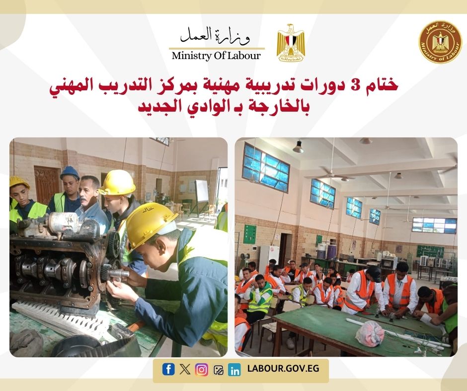 قام أسامة إبراهيم مدير مديرية العمل بالوادي الجديد بالمتابعة اللحظية للاختبارات العملية والنظرية لختام ثلاث دورات تدريبية بمركز التدريب المهني بالخارجة. شملت الدورات: كهرباء التوصيلات (41 متدربًا)، أعمال النجارة العامة (15 متدربًا)، وميكانيكا السيارات (31 متدربًا). وتأتي هذه الخطوة لتفعيل الدور الحيوي للتدريب المهني وربط مخرجات التدريب بمتطلبات سوق العمل أو إقامة مشروعات صغيرة.